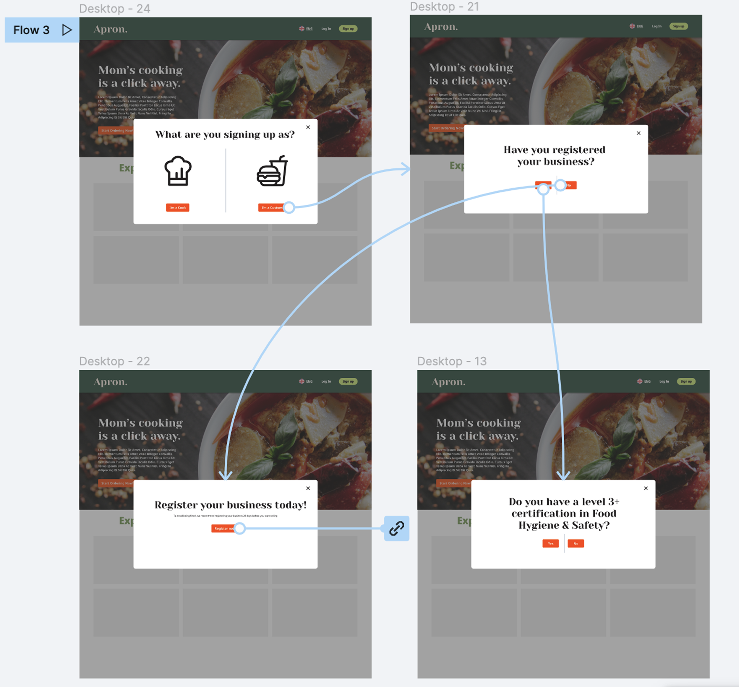 I worked on the OOTB flow for chefs, specifically the screening as I had been researching the legal side of selling homemade food since the start of the project.