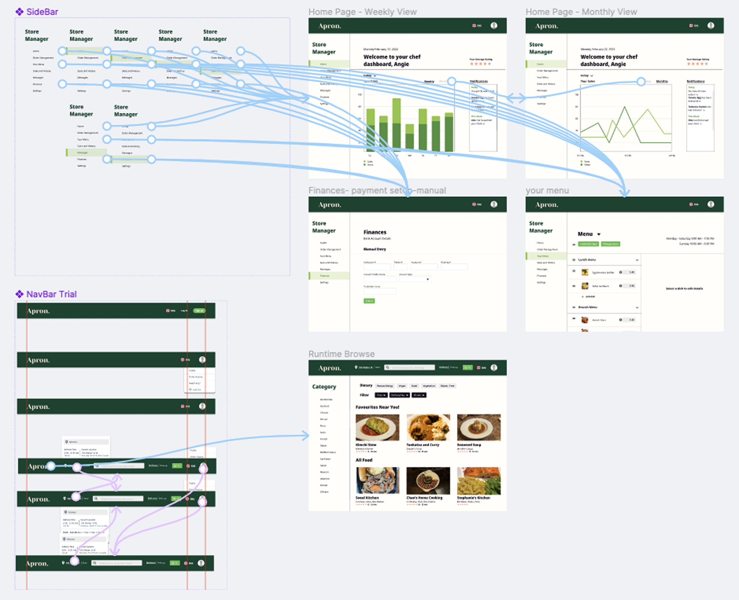 I completed the prototyping with occasional advice from the PM. I learned a lot more on how to use Figma during this iteration, including creating and swapping “instances” with the navigation bar. I also learned how to efficiently create drop down menus and hovers.